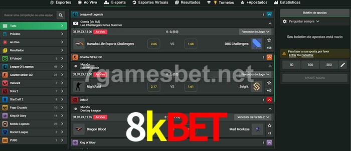 O 8kbet oferece uma grande seleção de opções de apostas em e-sports com probabilidades competitivas